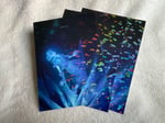 This mini print is 5" x 7" and comes with a holographic glossy finish